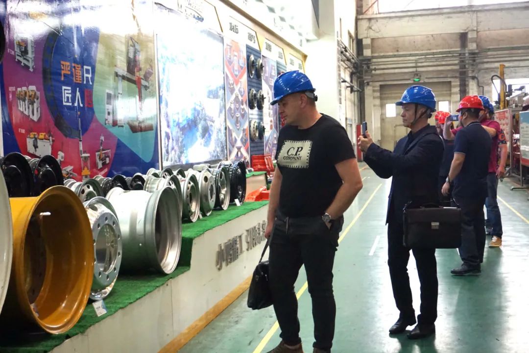 小鴨精工國際發(fā)展部經(jīng)理張海濤、智能裝備事業(yè)部副經(jīng)理何通陪同薩馬拉客戶深入生產(chǎn)車間參觀了解。參觀過程中,客戶對熱處理、車輪設(shè)備、車輪模具等設(shè)備和產(chǎn)品有著濃厚興趣,不時駐足拍照并進(jìn)行技術(shù)交流。