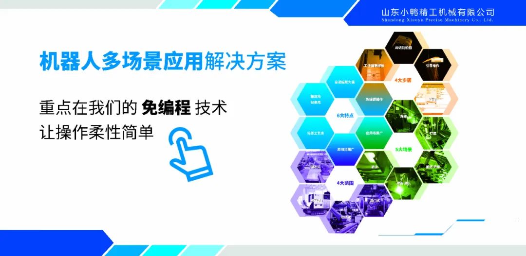 小鴨精工公司不僅可以一站式提供機(jī)器人多場(chǎng)景應(yīng)用解決方案,實(shí)現(xiàn)交鑰匙工程,而且提供免編程技術(shù)支持,無需專業(yè)技術(shù),讓操作更加柔性簡(jiǎn)單,可以應(yīng)用于移動(dòng)式機(jī)器人工作站、機(jī)器人打磨、機(jī)器人搬運(yùn)、機(jī)器人焊接、機(jī)器人點(diǎn)焊等應(yīng)用場(chǎng)景,歡迎各界朋友來電咨詢!